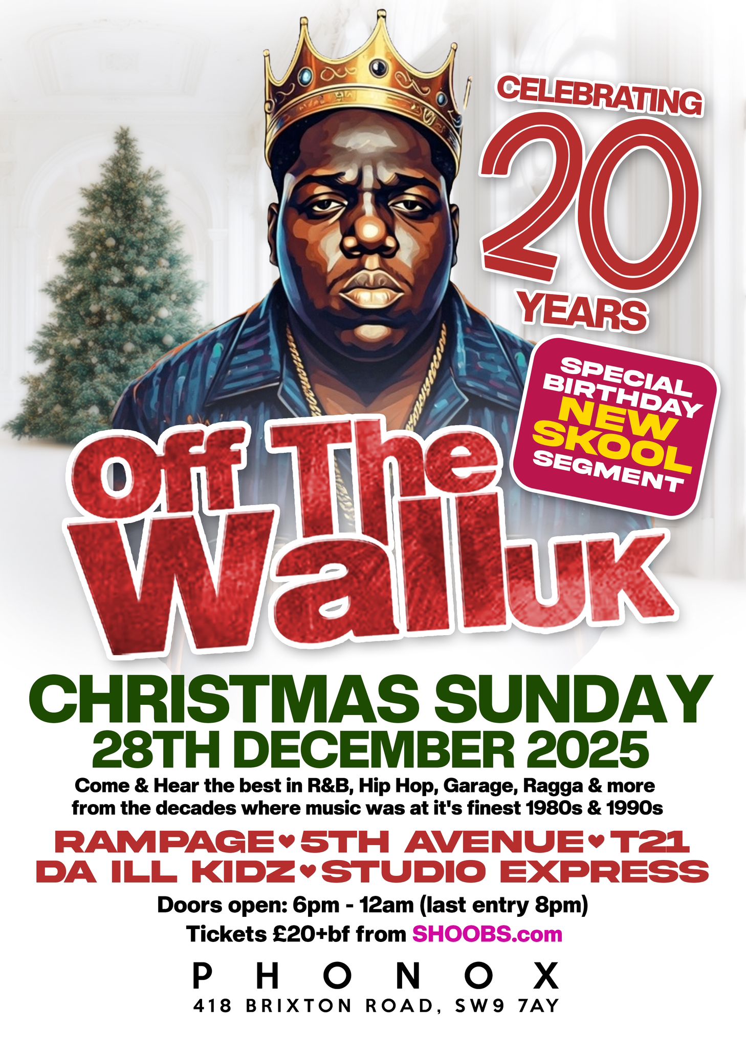 We are finally back as 2019 marks 14 gorgeously gorgeous years of Off The Wall which will be hosted at our spiritual home-Phonox (formerly Plan B). Come & hear the best R&B, Hip Hop, Ragga, Ga...